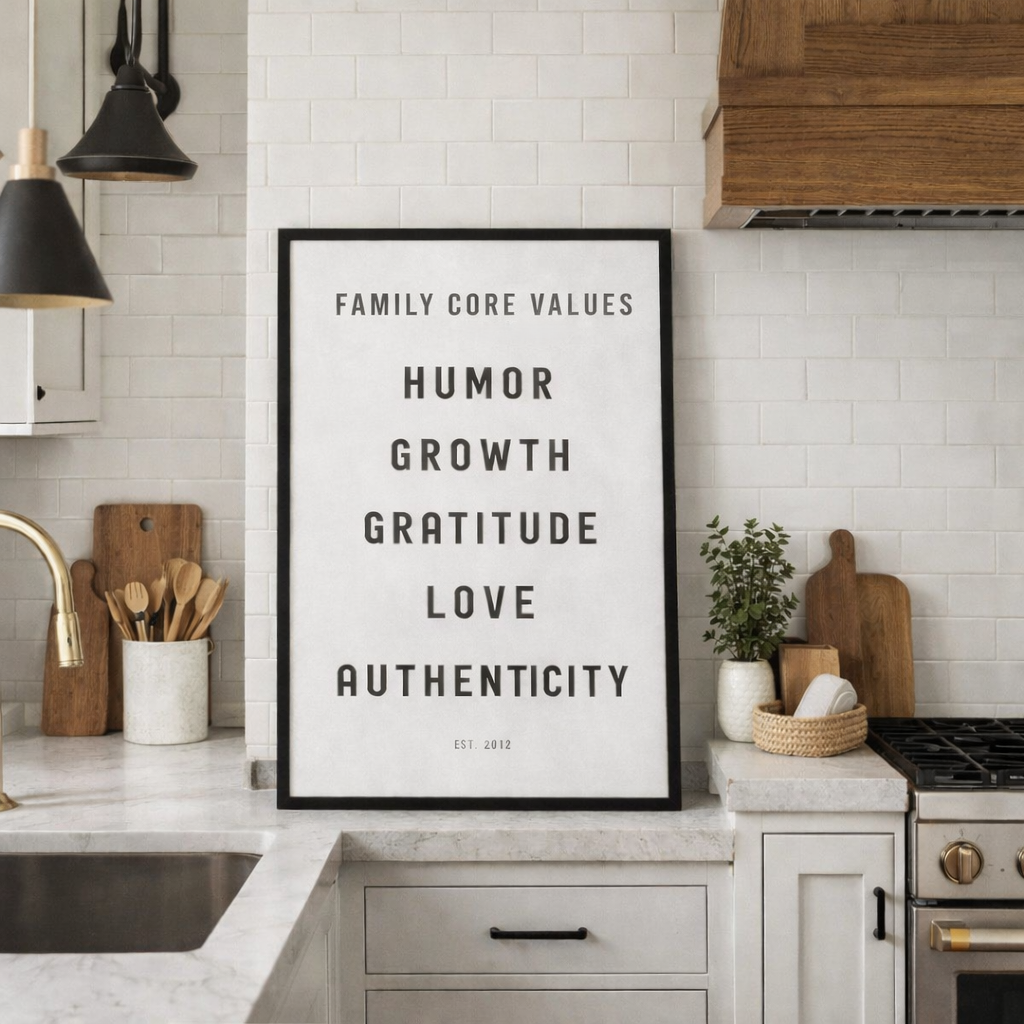 When Values are seen regularly, they begin to shape conversations, reinforce identity, and guide decisions. Children and grandchildren start to internalize what their family stands for. Friends ask questions. Guests notice.