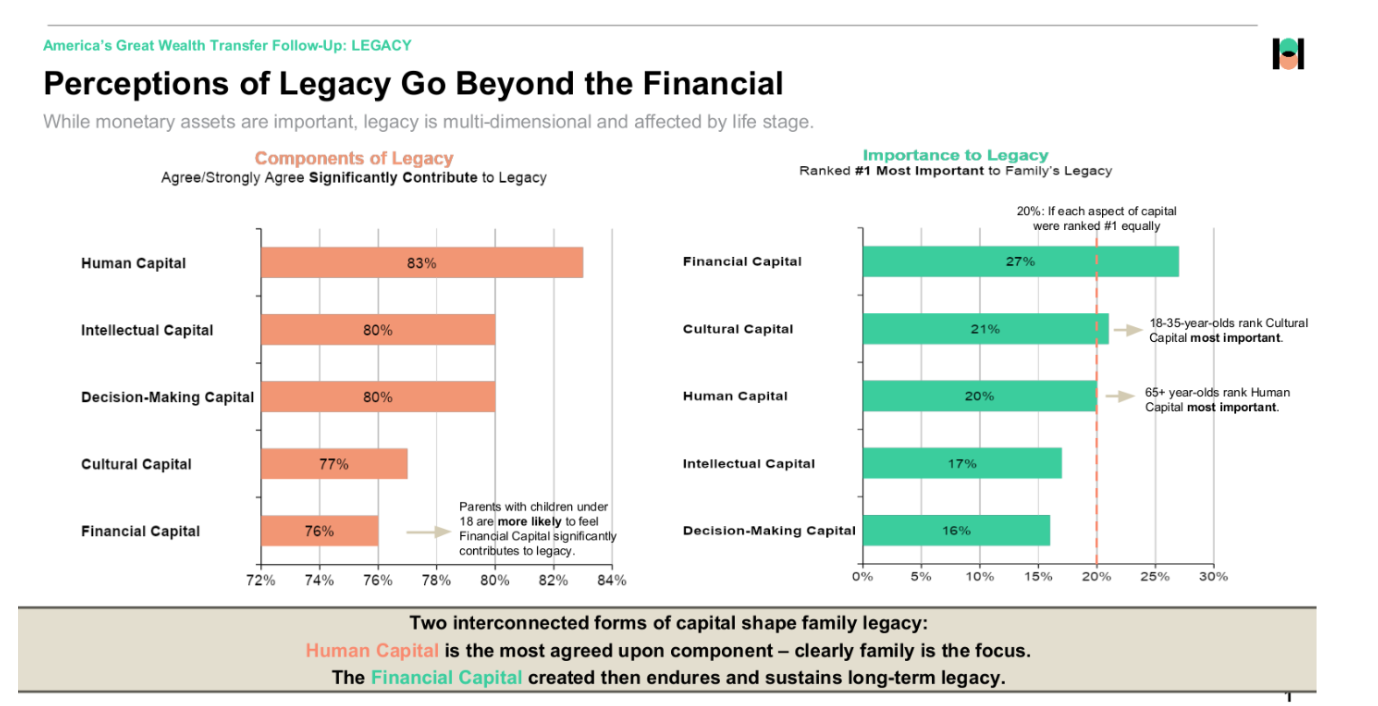 To understand how families define legacy, The Harris Poll evaluated perceptions through five forms of family capital: human, intellectual, decision-making, cultural, and financial.